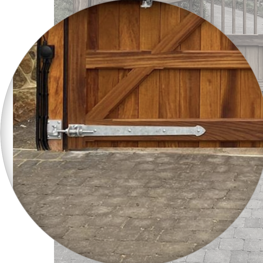 SERRA brackets for timber gates fitted with adj hinges. Finished SB+HFSZ ..
